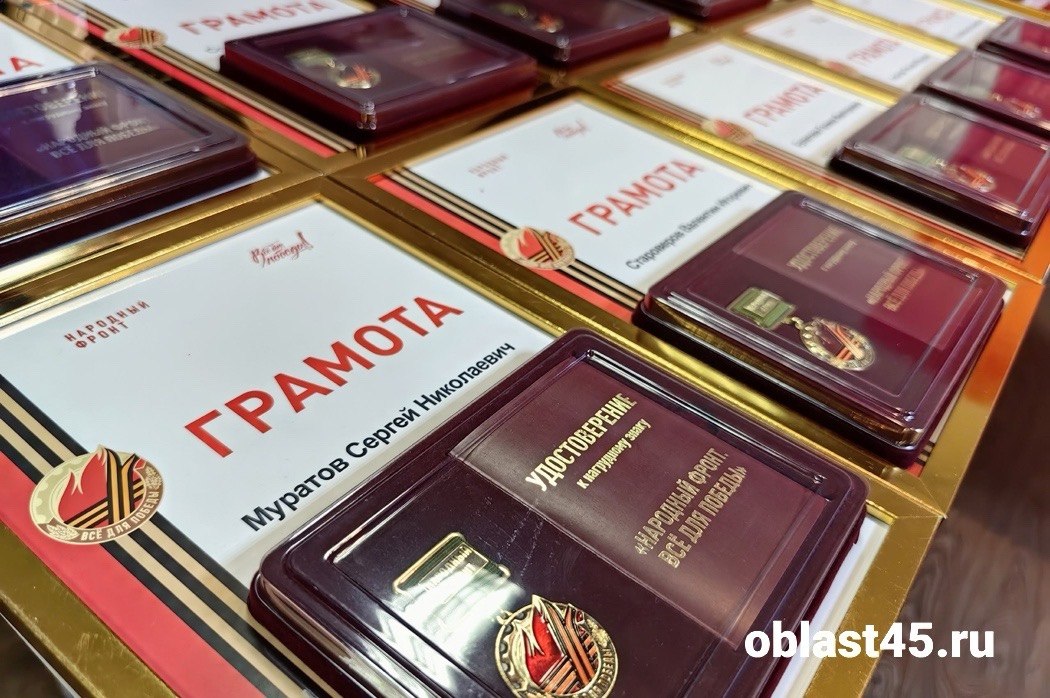 В курганском штабе Народного фронта прошла церемония вручения нагрудных знаков «Всё для Победы!». В числе награждённых - сенатор РФ Сергей Муратов и депутат Курганской областной думы Татьяна Хильчук.