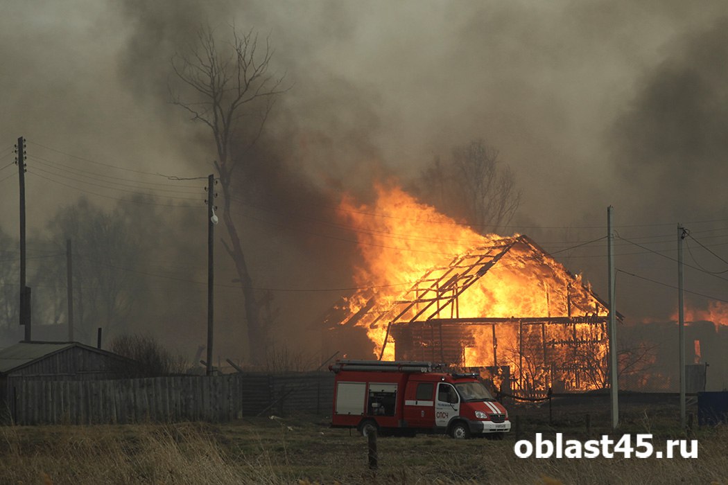 В Курганской области в деревне Крестовское горели дом, баня и надворные постройки. Сотрудники МЧС предполагают, что это был поджог.