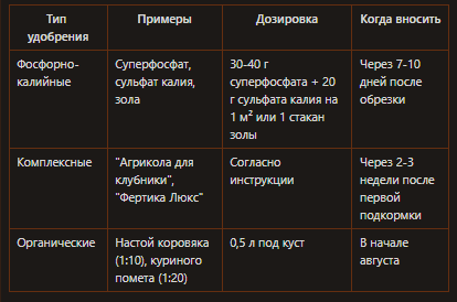 Обрезка и уборка листьев: После завершения сбора ягод следует провести санитарную обрезку. Удалите старую, поврежденную и пожелтевшую листву, оставляя только молодые и здоровые листья. В некоторых случаях можно обрезать всю листву, оставляя лишь сердцевину.Профилактическая обработка: После обрезки садоводы должны позаботиться о лечении растений. Используйте бордоскую жидкость, Фитоспорин-М или раствор медного купороса для защиты от грибковых заболеваний, а также Актара или настой чеснока для борьбы с вредителями.Подкормка: Клубника нуждается в питательных веществах для восстановления после плодоношения. Важно избегать азотных удобрений, так как они могут способствовать ненужному росту зеленой массы.Мульчирование и рыхление почвы: Прорыхлите землю между рядами, удаляя сорняки и замульчируйте грядки, чтобы сохранить влагу и защитить корни от морозов.Омоложение плантации: После 3-4 лет плодоношения необходимо обновить клубничные насаждения, отбирая здоровые усы для укоренения и удаляя старые, менее продуктивные кусты.Уход за ремонтантной клубникой