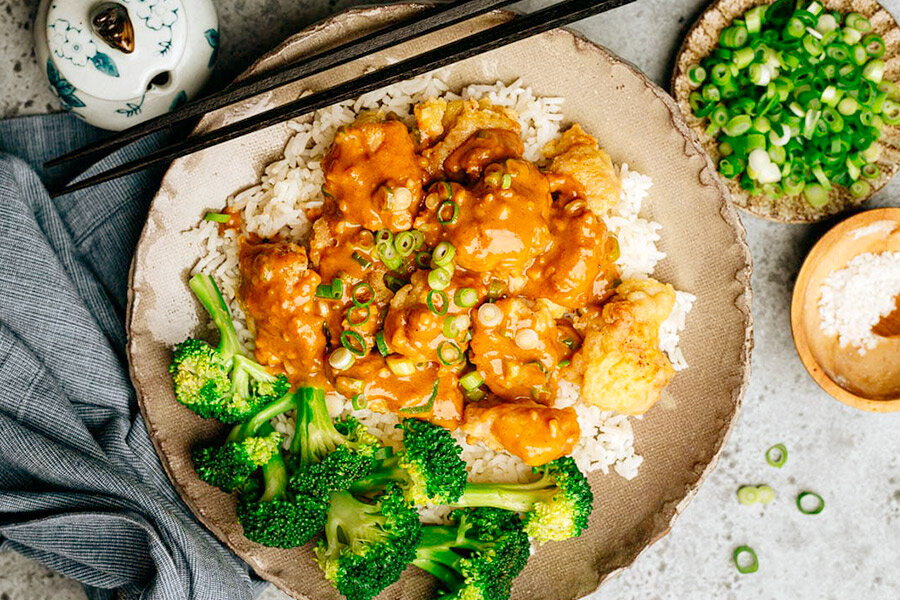 Куриные бедрышки нарезать на кусочки размером около 2 см и переложить в миску. Добавить немного соли и столовую ложку растительного масла. Вбить в смесь яйцо и тщательно перемешать, оставить мариноваться на 20 минут.Перед жаркой добавить кукурузный крахмал, тщательно перемешать, чтобы каждая деталь курицы была покрыта этой смесью.Что касается соуса, в отдельной миске соедините арахисовую пасту и воду, взбейте до однородной массы. Затем по одному введите остальные ингредиенты, не забывая перемешивать.В большой сковороде довести 1/4 стакана воды до кипения. Положить брокколи и накрыть крышкой, оставить на одну минуту, пока цветочки не станут хрустящими. Выложить на тарелку.В ту же сковороду добавить 3 ст. л. масла и разогреть. Выложить курицу в один слой и жарить по 2-3 минуты с каждой стороны до золотистой корочки, затем выложить на тарелку.Если необходимо, добавить немного масла в сковороду, добавить измельченные чеснок и имбирь, а также нарезанный зеленый лук, и обжаривать до появления аромата.Влить соус в сковороду и готовить одну минуту, пока он слегка не загустеет.Когда придет время сервировать блюдо, полить курицу соусом и подавать на стол горячей, сохраняя ее хрустящей.Великолепие блюда заключается в сочетании текстур и вкусов, а мастерство его приготовления подарит радость не только повару, но и всем, кто его попробует.