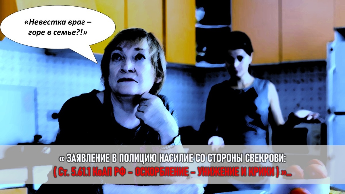 Спустя месяц невыносимого проживания, Рената решает действовать. В руках у нее оказываются не только записи оскорблений, но и мнение мужа, который, наконец, осознали масштаб натиска материнской фигуры. Невестка обращается в полицию с заявлением о психологическом насилии и подает иск в суд за право на проживание в квартире наравне с мужем. Кроме того, она обращается в органы опеки с просьбой о проверке условий проживания, подчеркивая, что свекровь создает невыносимую атмосферу в доме.