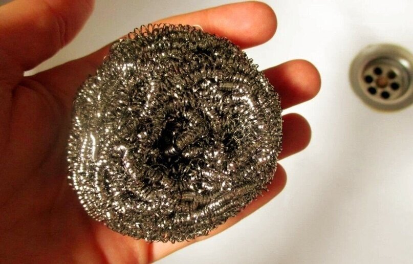 Металлические губки не только помогают на кухне, но и лучше всех удерживают мусор во время мытья посуды. Разместив губку на сливе, можно избежать засоров и лишних хлопот с очисткой: