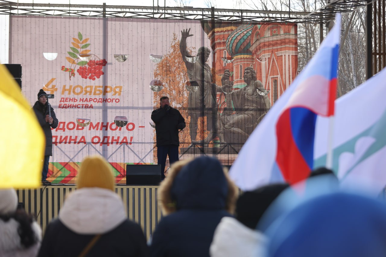Сегодня, 4 ноября, жители Курганской области вместе со всей страной празднуют День народного единства. Сотни горожан и гостей Кургана, несмотря на морозную погоду, собрались в Центральном парке культуры и отдыха, чтобы продемонстрировать гордость за свою страну и общее единение, выразить любовь к большой и малой Родине.