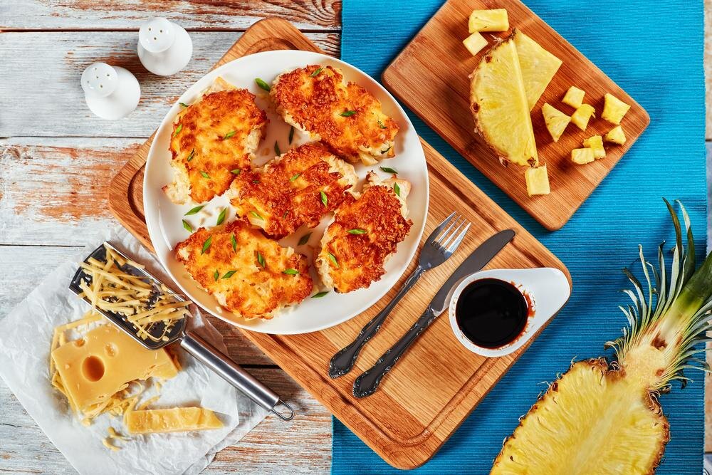 Простые в приготовлении куриные отбивные с ананасами смогут удивить гостей на празднике, а также порадовать семью в любой день. Это блюдо идеально сочетает в себе нежность куриного мяса и сладость ананасов, создавая гармоничное вкусовое сочетание.