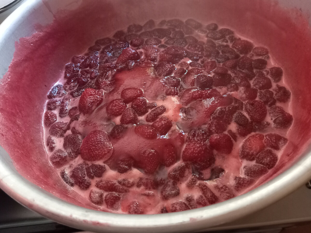 Сразу после того, как клубника покроется сахаром и начнет выделять сок, смесь следует поставить на огонь. Доведите до легкого кипения, аккуратно удаляя образовавшуюся пенку. Как только закипит, начните убирать часть сиропа. Этот процесс займет всего 5–6 минут, за которые объем жидкости уменьшится примерно на одну треть.