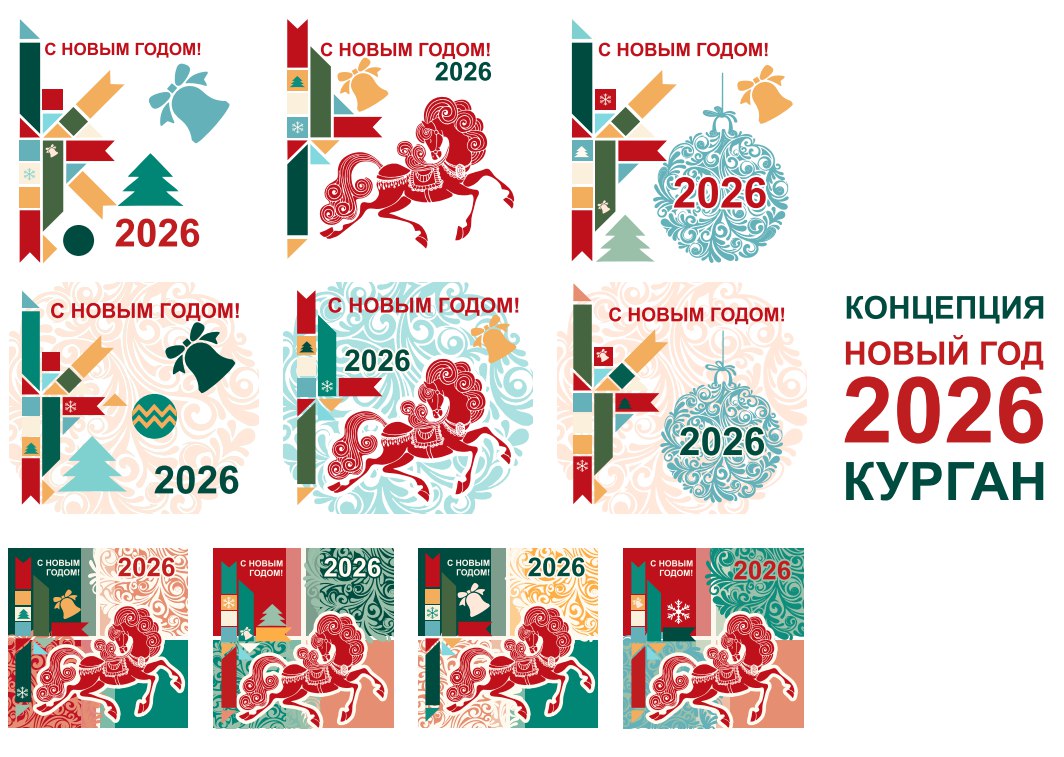 Улицы Кургана, а также остановки, автобусы и витрины магазинов в честь Нового года украсят в едином стиле: на баннерах изобразили красного коня.