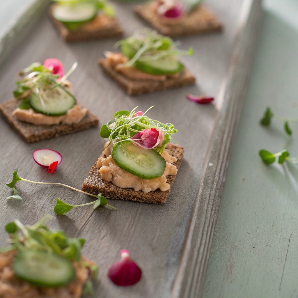Мини-сэндвичи на ржаных хлебцах с хумусом и зеленью