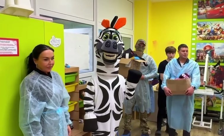 Сотрудники Госавтоинспекции, участник спецоперации и весёлая Зебра посетили юных пациентов больницы «Красный крест».