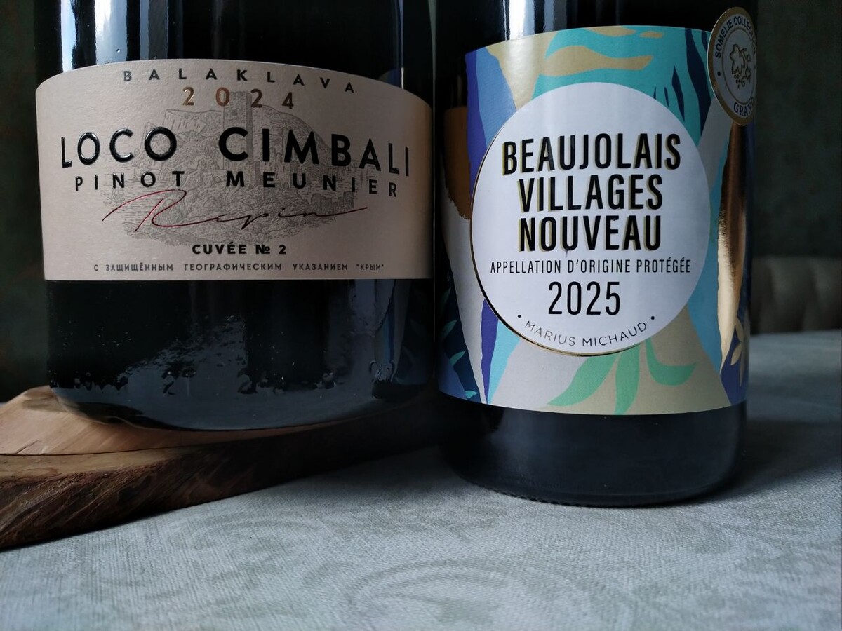 Размышляя о выборе бутылки, они обратили внимание на молодое российское вино – «Молодое вино» из саперави от «Шато Тамани», но цена в 550 рублей оставила некоторые сомнения. В итоге выбор пал на Божоле Нуво Marius Michaud, который обошелся в 1250 рублей в магазине "Отдохни". Для сравнения было выбрано и другое интересное молодое вино – пино-менье урожая 2024 года от Loco Cimbali, совместного проекта крымского винодела Олега Репина и «Золотой балки». Оно имеет свежий розлив, который поднимет настроение в осенний вечер.