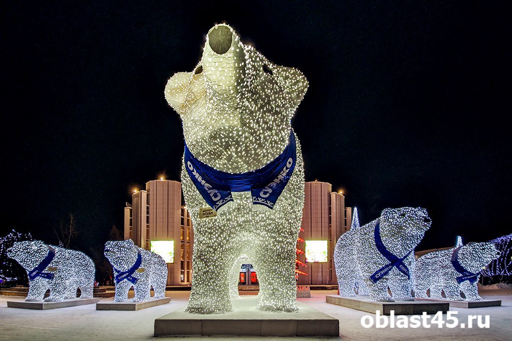 Семейство белых медведей вновь поселится у Курганской филармонии 2 декабря. Перед этим косолапые проедут по всему городу.