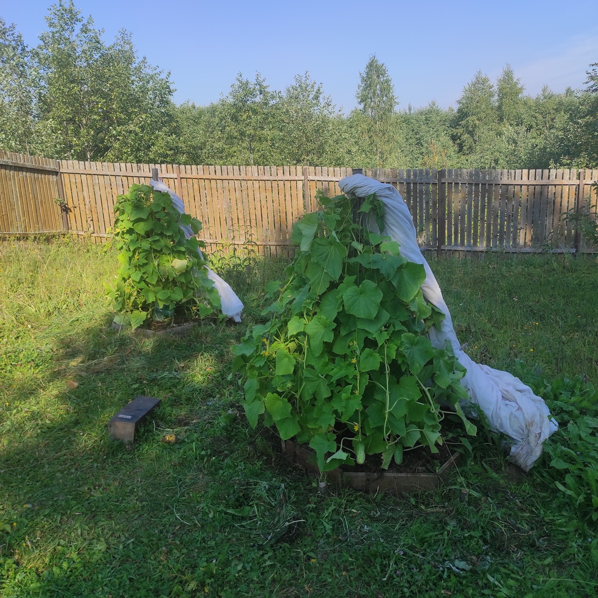Как только температура начинается повышаться и условия становятся комфортными, агроволокно можно частично снять, что позволяет растениям дышать, а огурцам — получать необходимый свет. С такой системой поливи сбора урожая становится заметно легче, так как все коммуникации организованы в круге. В случае похолодания можно оперативно вернуть укрытие на место, что минимизирует риск заболеваний.