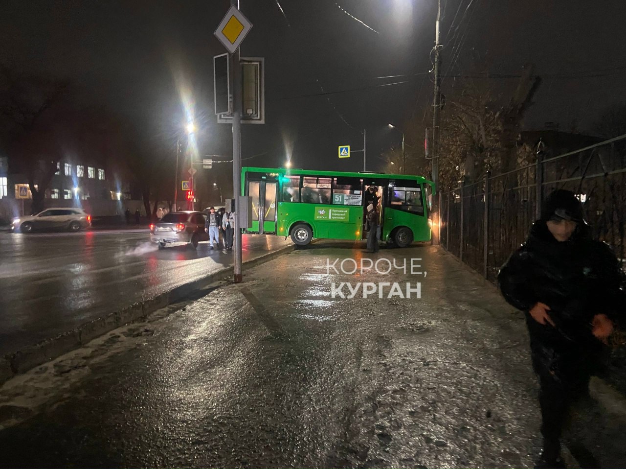 Из-за гололёда автобус в Кургане врезался в опору линии электропередачи