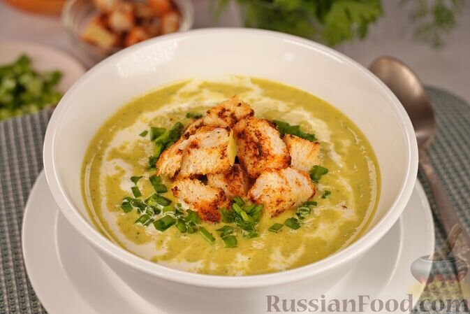 - Крем-суп из цукини: Нежный суп с добавлением сливок и ароматными сухариками, который станет идеальным началом любого обеда.