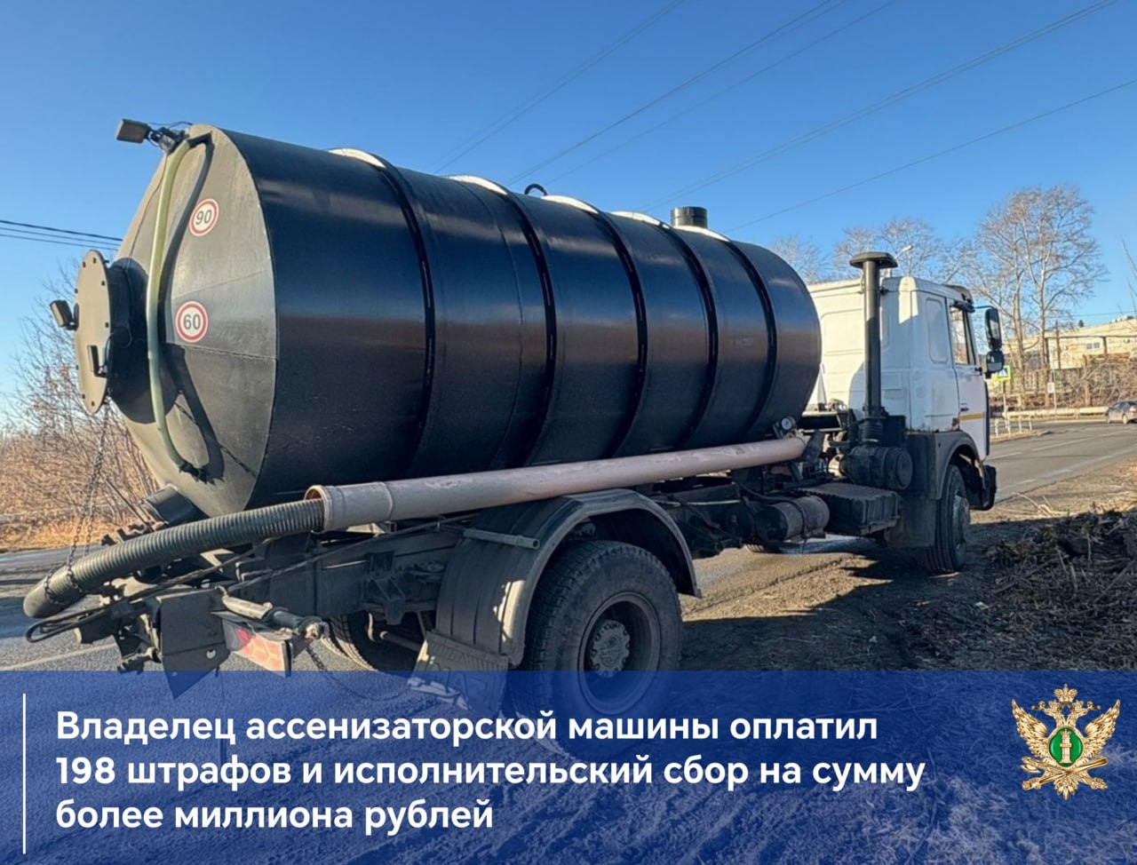 Курганские судебные приставы взыскали с владельца ассенизаторской машины 198 административных штрафов на сумму 800 тысяч рублей и исполнительский сбор в размере 200 тысяч рублей, который назначили в связи с игнорированием решения суда.