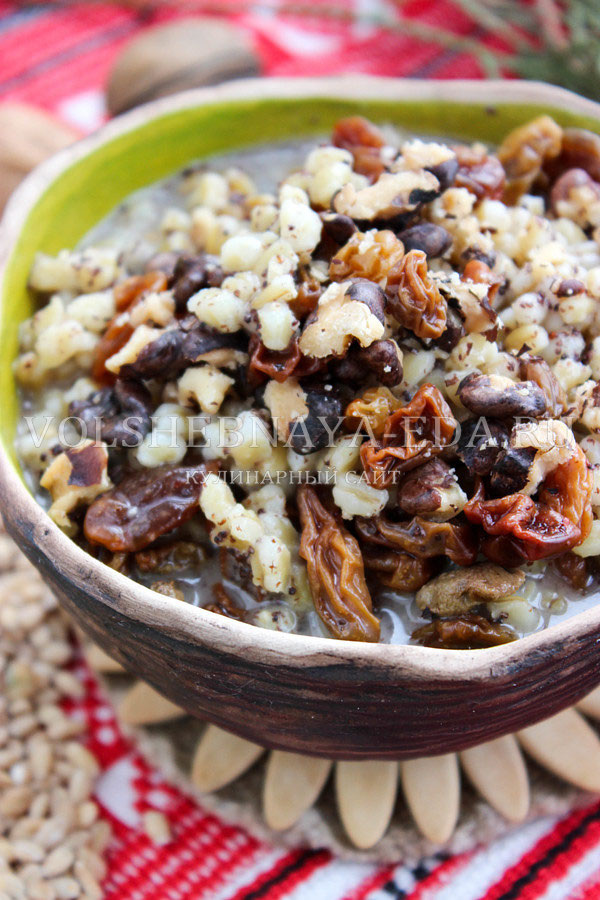 Параллельно необходимо подготовить мак и изюм. Изюм запаривается в горячей воде примерно на 30 минут, а мак перетирается с сахаром. При желании, маковое молочко можно дополнительно проварить для улучшения вкуса. Затем к уже остывшей каше добавляют сладкое молочко и перемешивают, чтобы она пропиталась, после чего добавляют запаренный изюм и орехи. При подаче кутья должна выглядеть аппетитно, а также сохранить свой изысканный вкус.