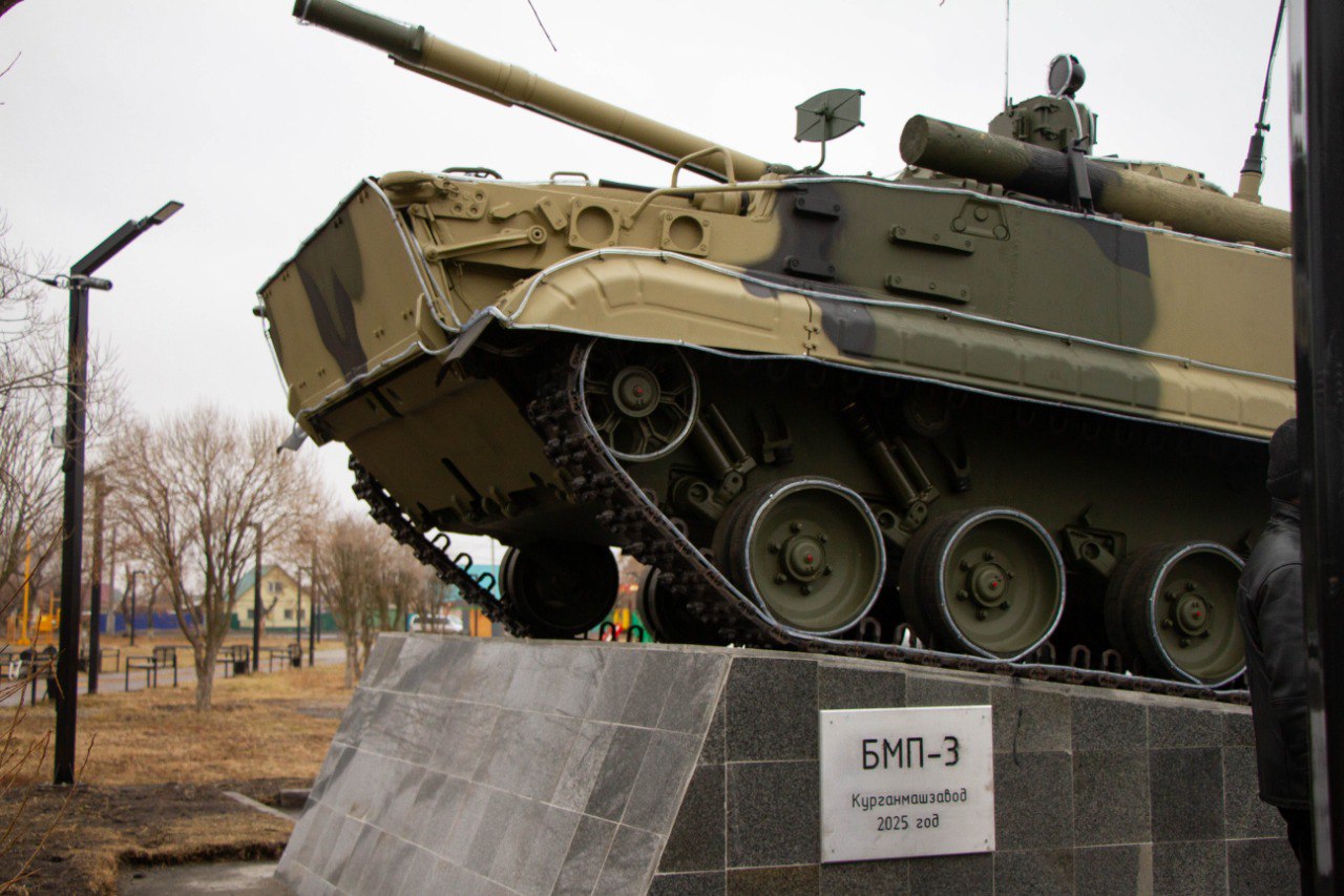 В Кургане около Курганского аэропорта состоялась торжественная церемония открытия памятника легендарной боевой машине пехоты – символу города Кургана – БМП-3. В тожественной церемонии открытия приняли участие глава города Кургана Антон Науменко, генеральный директор АО «Курганский машиностроительный завод» Игорь Гиске и сотрудники КМЗ, ветераны, молодёжь, жители Кургана.