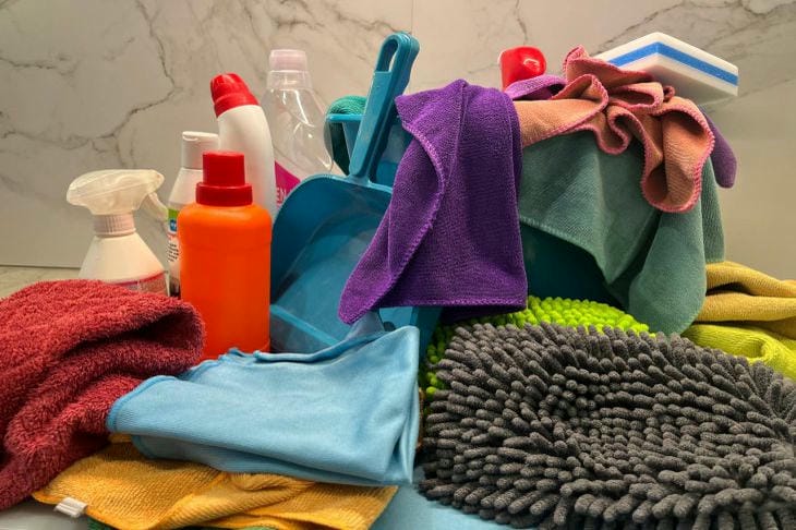 Начните с быстрого сбора разбросанных вещей в корзину или большую сумку. Уберите эту временную "капсулу хаоса" в шкаф или закрытую комнату.