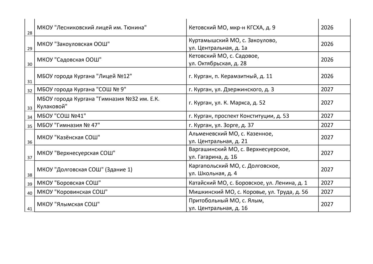 В следующем году начнут строить школу в селе Усть-Уйское Целинного округа. В селе Мостовском Варгашинского округа появится новый детский сад. А в Кургане сейчас строят новое здание гимназии, сообщили в региональном правительстве.