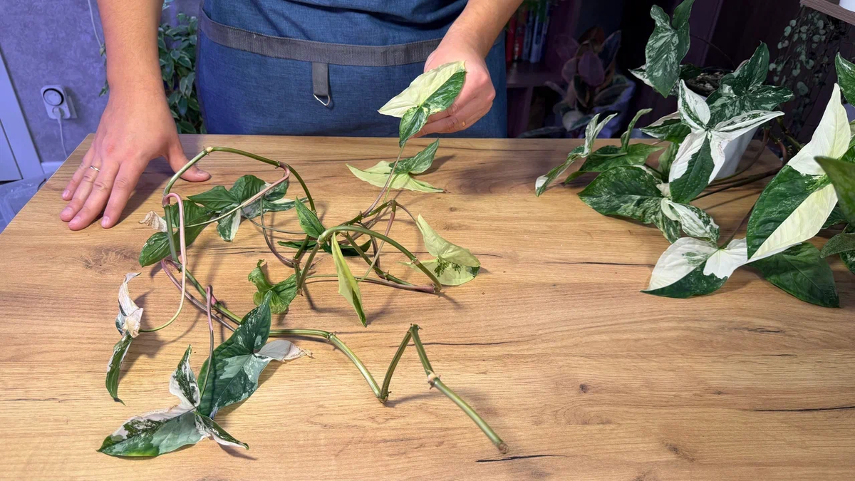 Сингониум размножается очень легко. На лианах образуются воздушные корни, которые при контакте с водой или грунтом начинают активно расти. Для успешного укоренения можно использовать черенки длиной 8-10 см с одним листом и несколькими корешками. Каждый такой черенок станет основой нового растения.