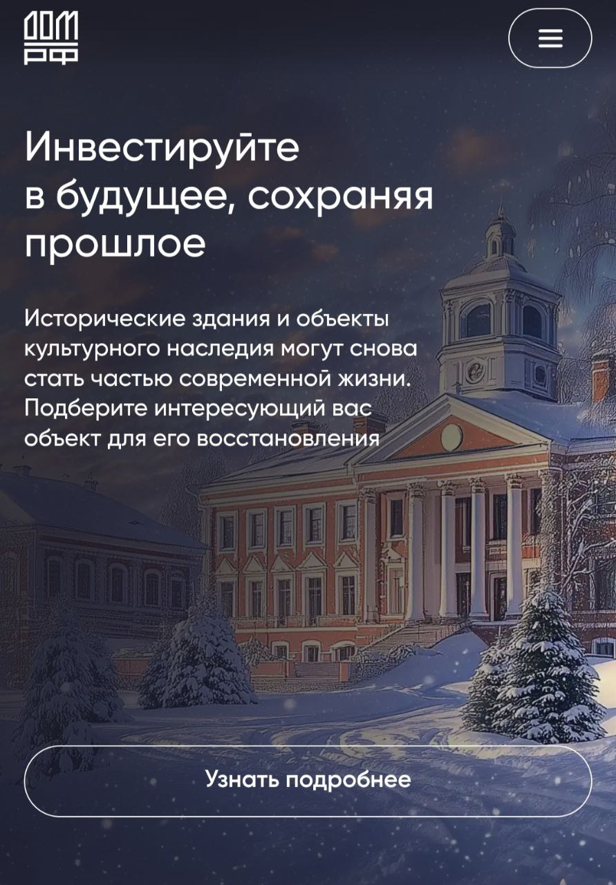 Также на портале можно получить информацию о мерах поддержки инвесторов в восстановлении объектов культурного наследия.