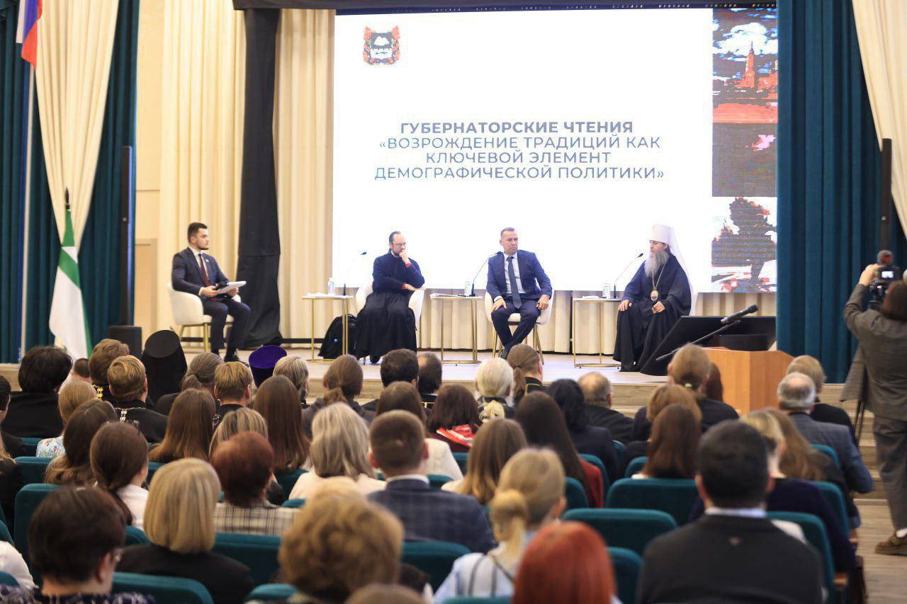 «Проводим Губернаторские чтения совместно с Русской православной церковью. С нами владыка Даниил и диакон Сергий Галиев, педагог и ученый, телеведущий телеканала «СПАС». Говорим сегодня о том, что проблема номер один для всей страны – это демография. Коэффициент рождаемости по стране уже ниже 1,4. Снижается он и у нас, в том числе ввиду снижения количества женщин фертильного возраста в предыдущий период.Фабула мероприятия проста. Идея общества потребления обанкротилась. Покупки, новый автомобиль, модные вещи или поездка в Турцию не могут быть основной идеей для существования целого народа. Тем более такого народа, который дал миру Сергия Радонежского, Чехова, Толстого, Пушкина и Достоевского. Запрет идеологии привел к безыдейности, а она в свою очередь – к потере своих истинных ориентиров и навязыванию чуждых. К снижению морально-нравственного ценза, а в чём-то и к духовной нищете.