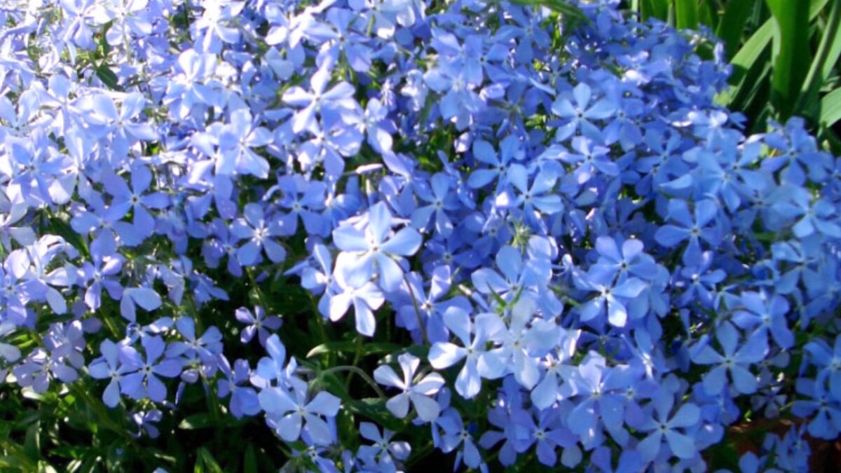 - Лесные виды: Растопыренный флокс прекрасно чувствует себя в условиях полутени и дополняет сад своими воздушными соцветиями с голубыми, сиреневыми или белыми цветками.