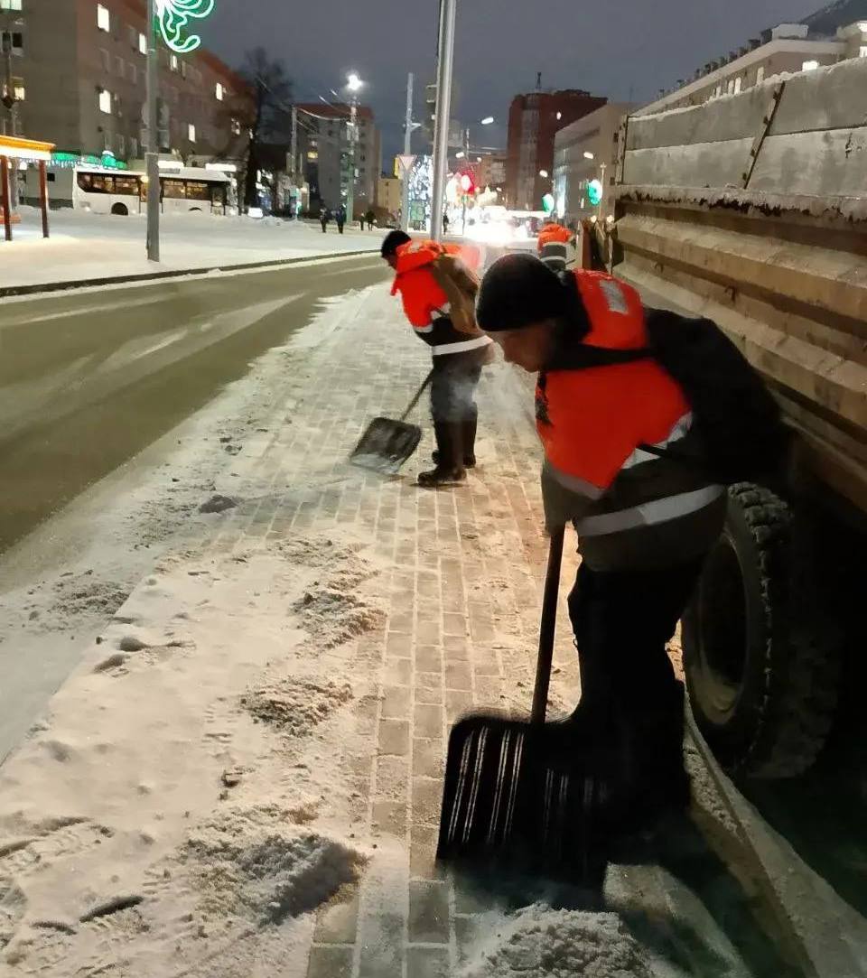 В течение дня дорожные службы работали в центральной части города, на шоссе Тюнина, автодороге на микрорайон Смолино, по ул. Б.-Петрова, также в микрорайоне Западном. Велась очистка тротуаров от снега вручную и механизированным способом на всех закрепленных территориях. От снега очищали переходы, перекрестки и посадочные площадки на остановках общественного транспорта, заездные карманы, выполнялось подметание внутриквартальных проездов. Также производилась расчистка от снежных валов по улицам Омская, Ленина пр.М.Голикова. Расчистка тротуаров от выпавшего снега проводилось по улицам Кравченко, Орлова, Климова, Володарского К. Мяготина.