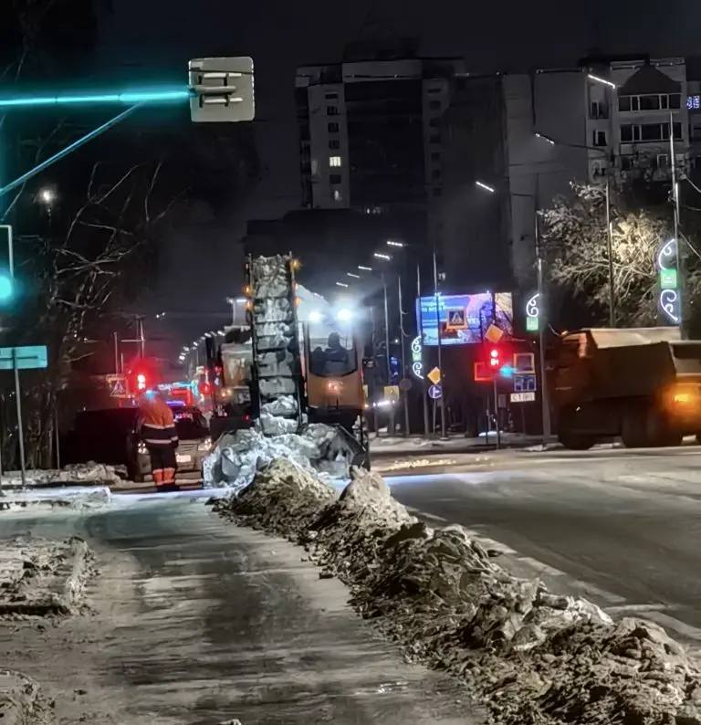Сегодня в течение дня на всех городских маршрутах шла уборка снега. В первую очередь очищались магистральные улицы, там, где ходит общественный транспорт, после чего проводилась механизированная уборка тротуарной части и обработка противогололедными материалами улично-дорожной сети.