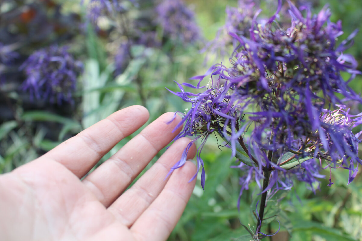 Первые утренние часы раскрывают перед нами синевато-фиолетовый оттенок «Гения», который волшебно меняется в течение дня. Под ярким солнцем цветы могут блистать насыщенными фиолетовыми нотами, а если вы приглядетесь, можно заметить даже холодные розовые акценты. Этот эффект достигается благодаря необычной «лохматости» соцветий, где лепестки взаимодействуют с солнечными лучами, создавая удивительную играющую палитру.