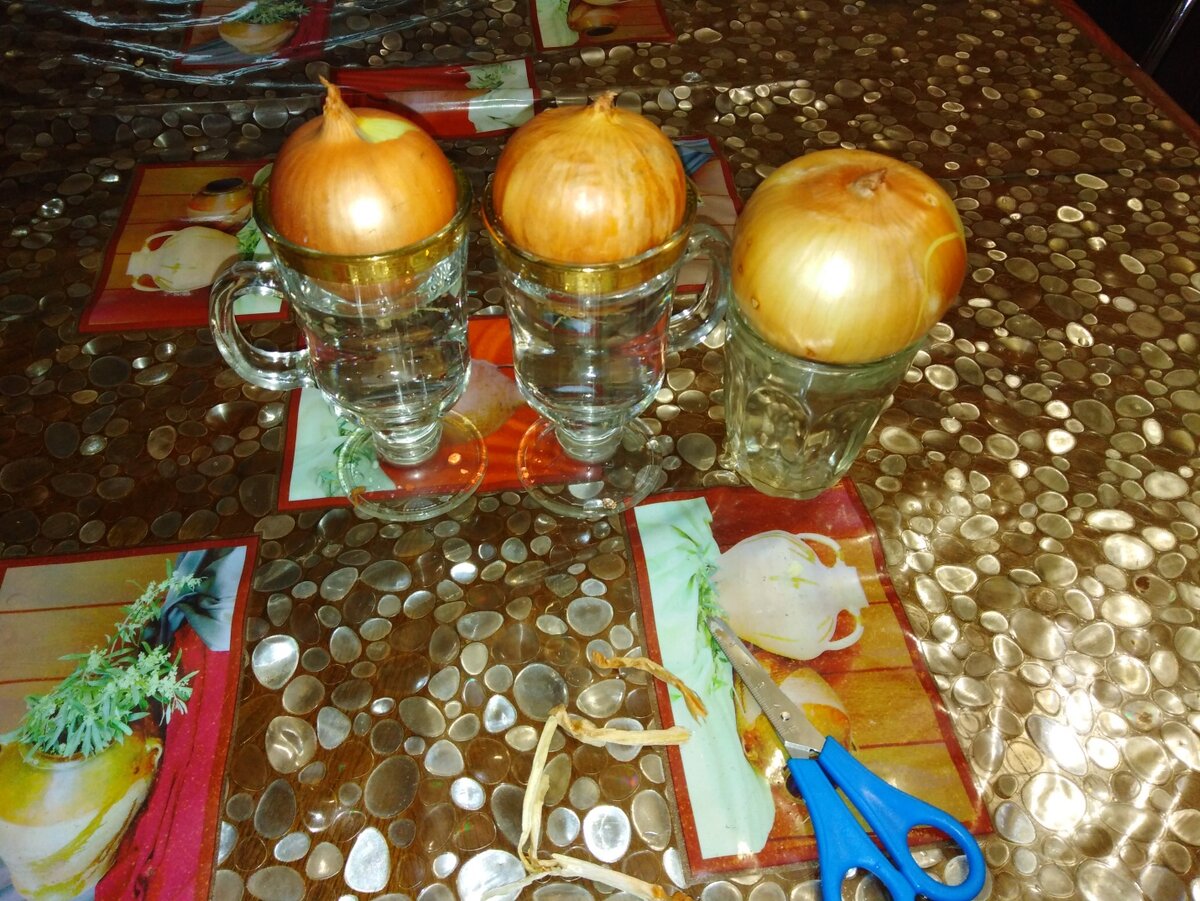 - Следите за светом. Регулярно поворачивайте стаканы, чтобы лук получал равномерное освещение со всех сторон.