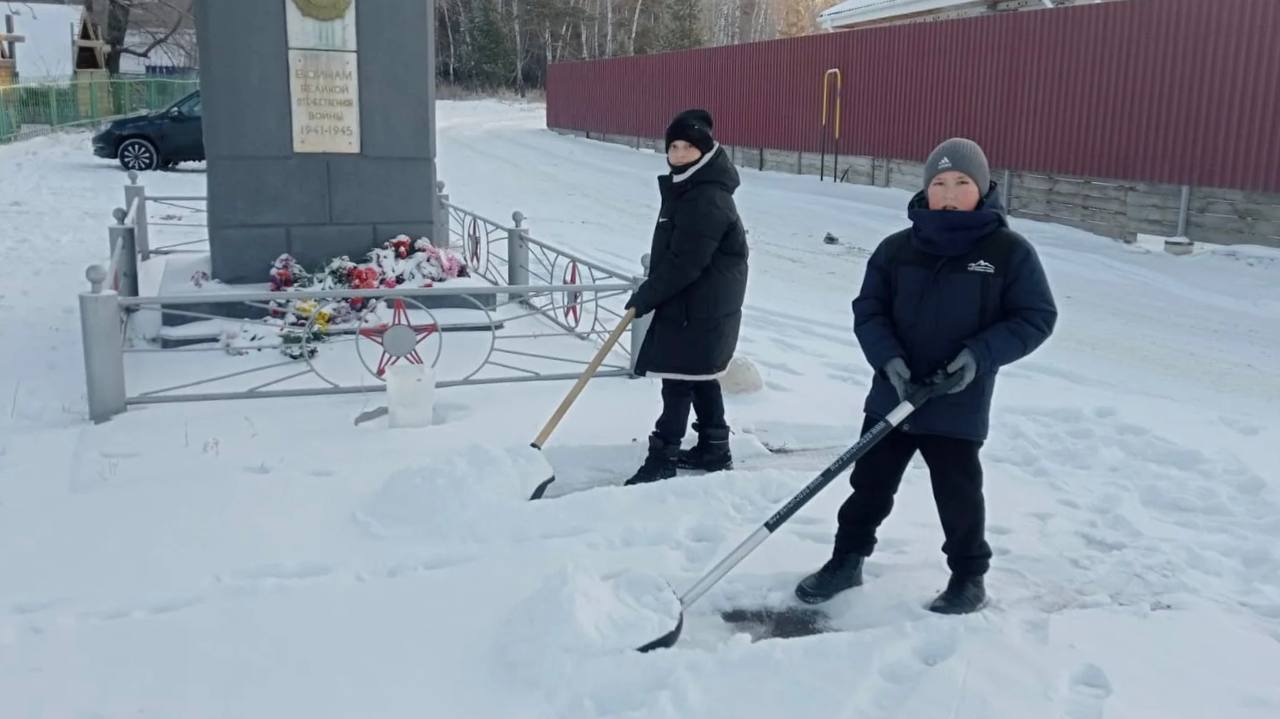 Учащиеся Казаркинской школы Макушинского округа очистили от снега памятник воинам-односельчанам, погибшим в годы Великой Отечественной войны. Ребята расчистили от сугробов подходы к мемориалу.