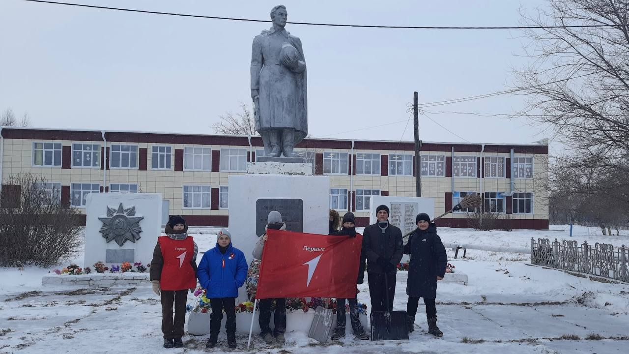 Активисты «Движения Первых» из Долговской школы Каргапольского округа очистили территорию памятника воинам, павшим в годы Великой Отечественной войны. Молодые люди убрали снег вокруг всего памятного комплекса, обеспечив аккуратный и ухоженный вид важного для села места.