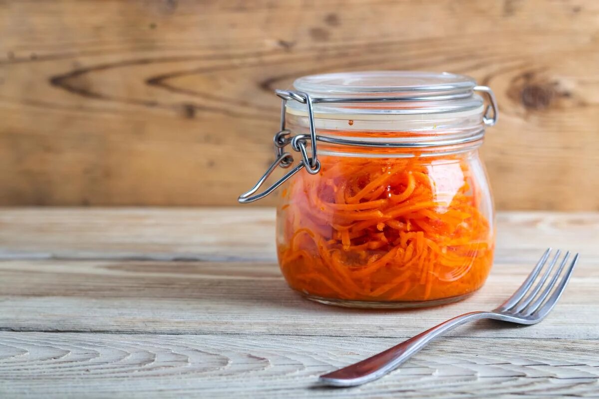 Процесс подготовки довольно прост. Сначала морковь нужно тщательно промыть, очистить и натереть на терке – подойдёт как обычная, так и корейская терка. Затем морковь следует перемешать с солью. Все банки, в которые будет закладываться морковь, рекомендуют предварительно простерилизовать или хотя бы тщательно промыть горячей водой с добавлением соды. Крышки стерилизуют в кипящей воде в течение 10 минут.