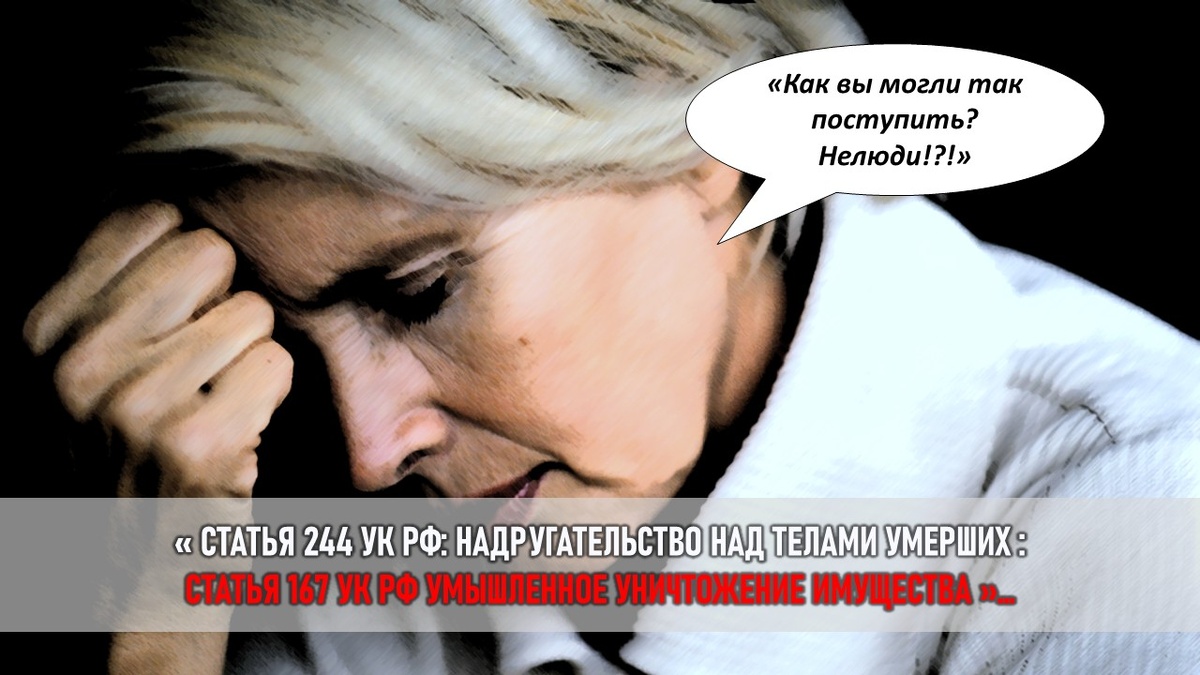 Вскоре она узнала, что её свёкор и брат мужа Пётр подделали её подпись в администрации кладбища на разрешение переноса памятника. Ольга была глубоко потрясена – «Вы уничтожили память!» — воскликнула она, узнав, что надгробие её любимого мужа просто разбили на куски.