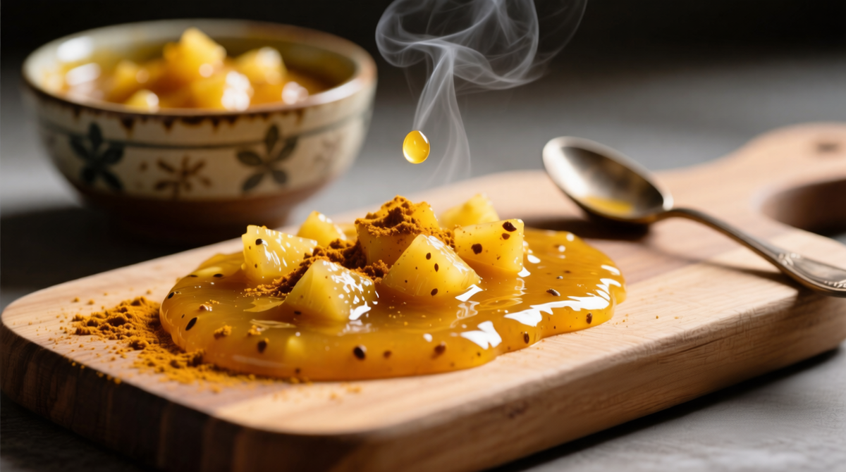 На следующем этапе создается пряная основа. Специи смешиваются с водой до образования пасты и добавляются в тушеный ананас. Можно немного пюрировать массу, для сохранения текстуры при желании. Затем происходит контролируемое желирование с пектином, что обеспечивает нужную консистенцию. Готовый джем разливается по стерилизованным банкам и должен настояться минимум 3-4 дня, чтобы взаимосвязь вкусов полностью раскрылась.