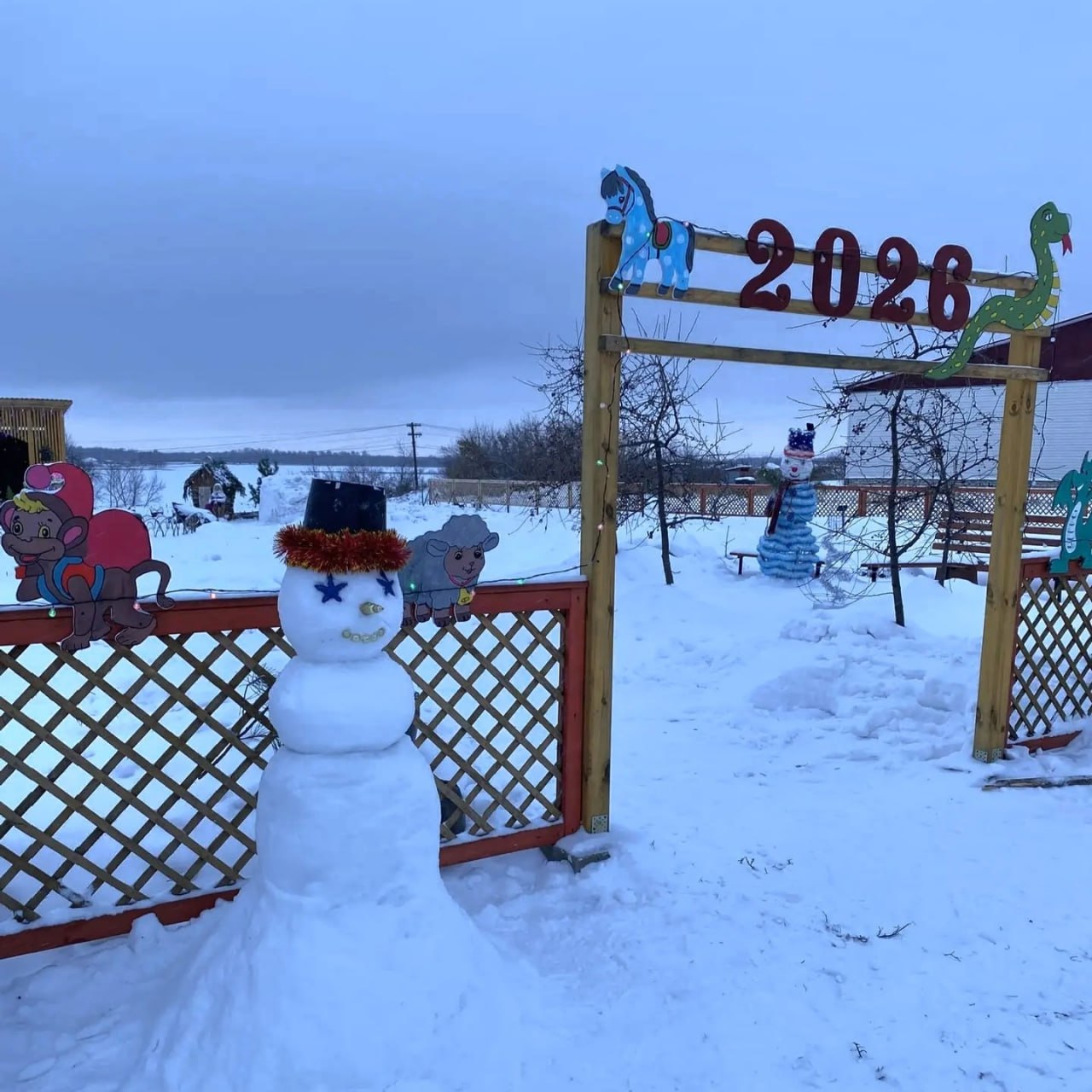 Владимир Сметанин создал на площади имени Куликова в селе Половинном Целинного округа настоящую сказочную атмосферу. Здесь веселые снеговички, большая снеговая печь и горка.