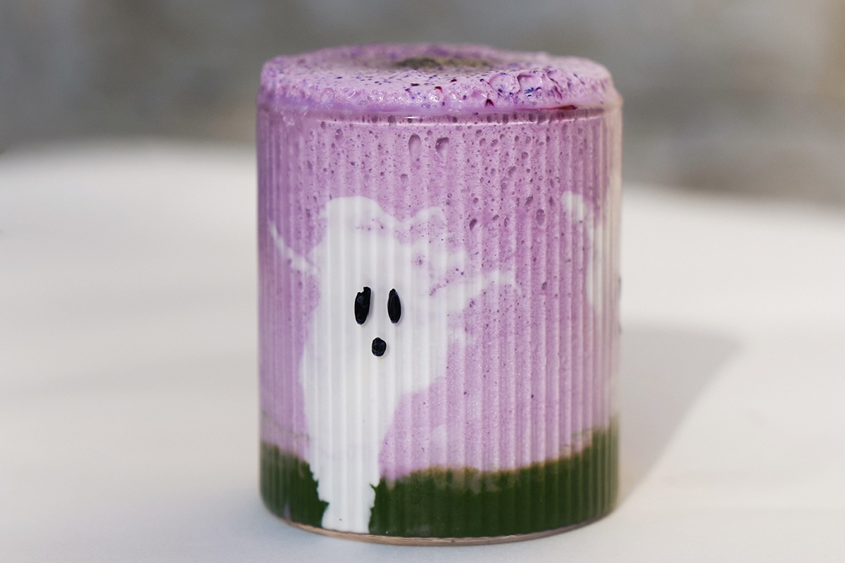 Сеть Angel Cakes удивляет уникальным напитком под названием «Мистик Матча». Он сочетает в себе матча, кокосовое молоко и йогурт, а яркий фиолетовый цвет достигается благодаря экстракту батата. Это творение скорее можно назвать «питьевой кондитеркой», чем сладким блюдом.