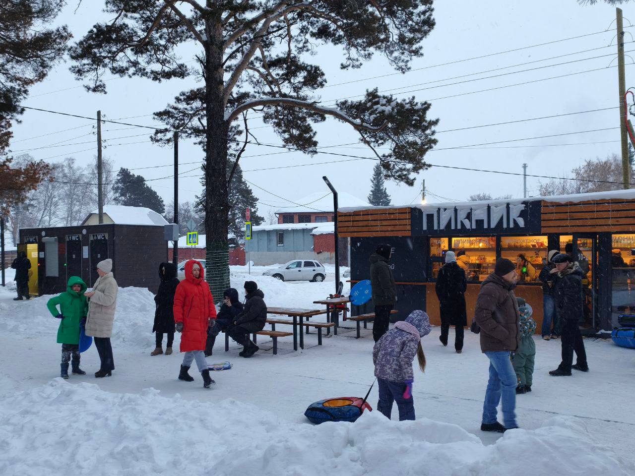 Для тех, кто не привык и не хочет в новогодние праздники сидеть дома, в микрорайоне Рябково работает Экопарк. Здесь можно покататься на лыжах, санках, тюбингах и просто прогуляться по зимнему лесу.