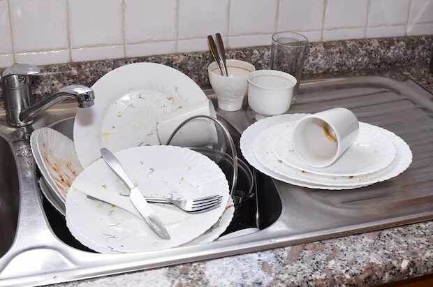 - Чистая раковина и минимальный бункер. Лучше всего мыть посуду сразу после еды, чем откладывать. Это правило помогает избежать постоянного наличия грязной посуды.
