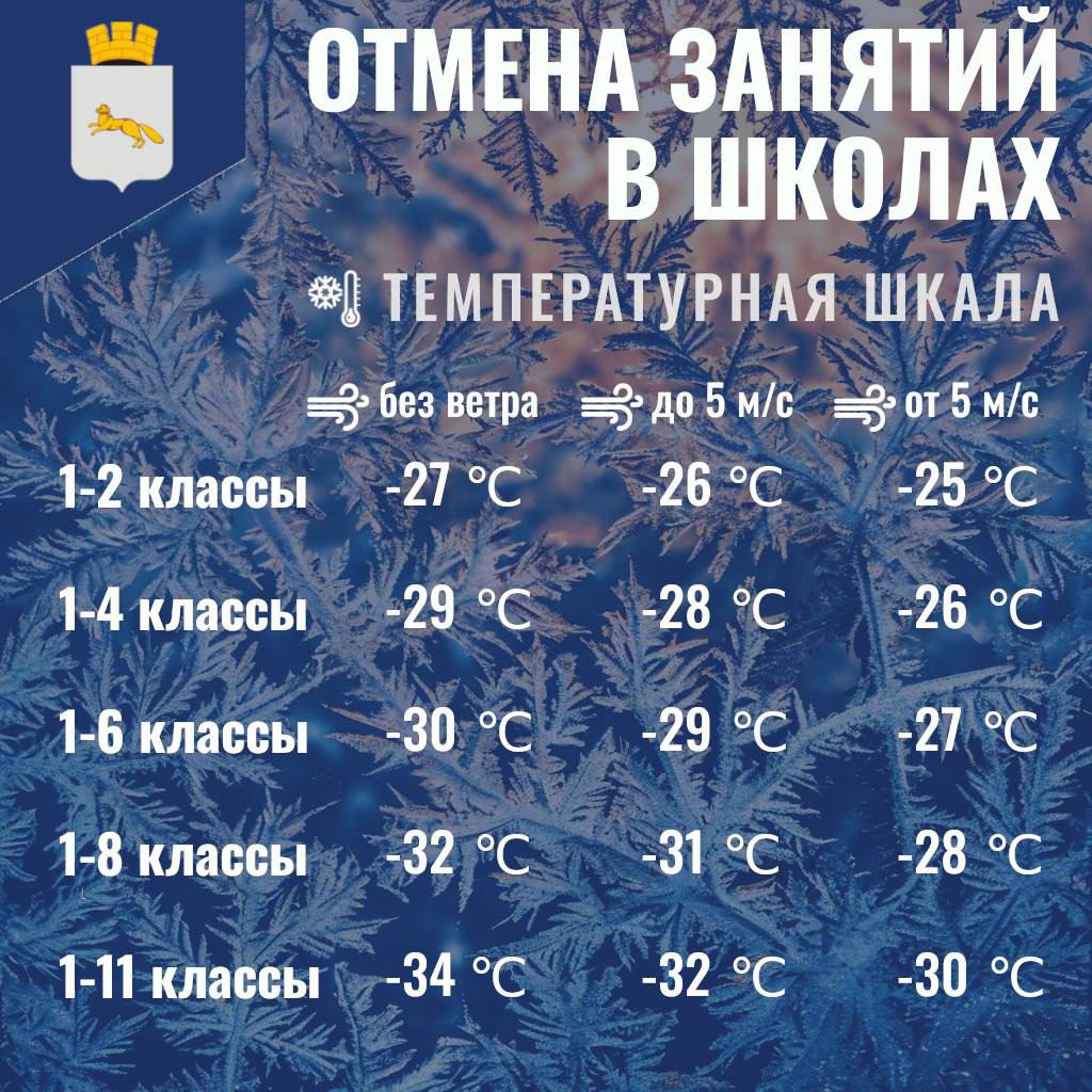 Власти Шадринска рекомендовали воздержаться от посещения школы в морозы.
