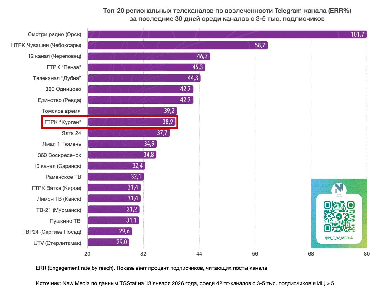 Мы вошли в рейтинг New Media среди региональных телеканалов по четырём метрикам: вовлеченности, весу канала, суммарному и среднему охвату одной публикации.