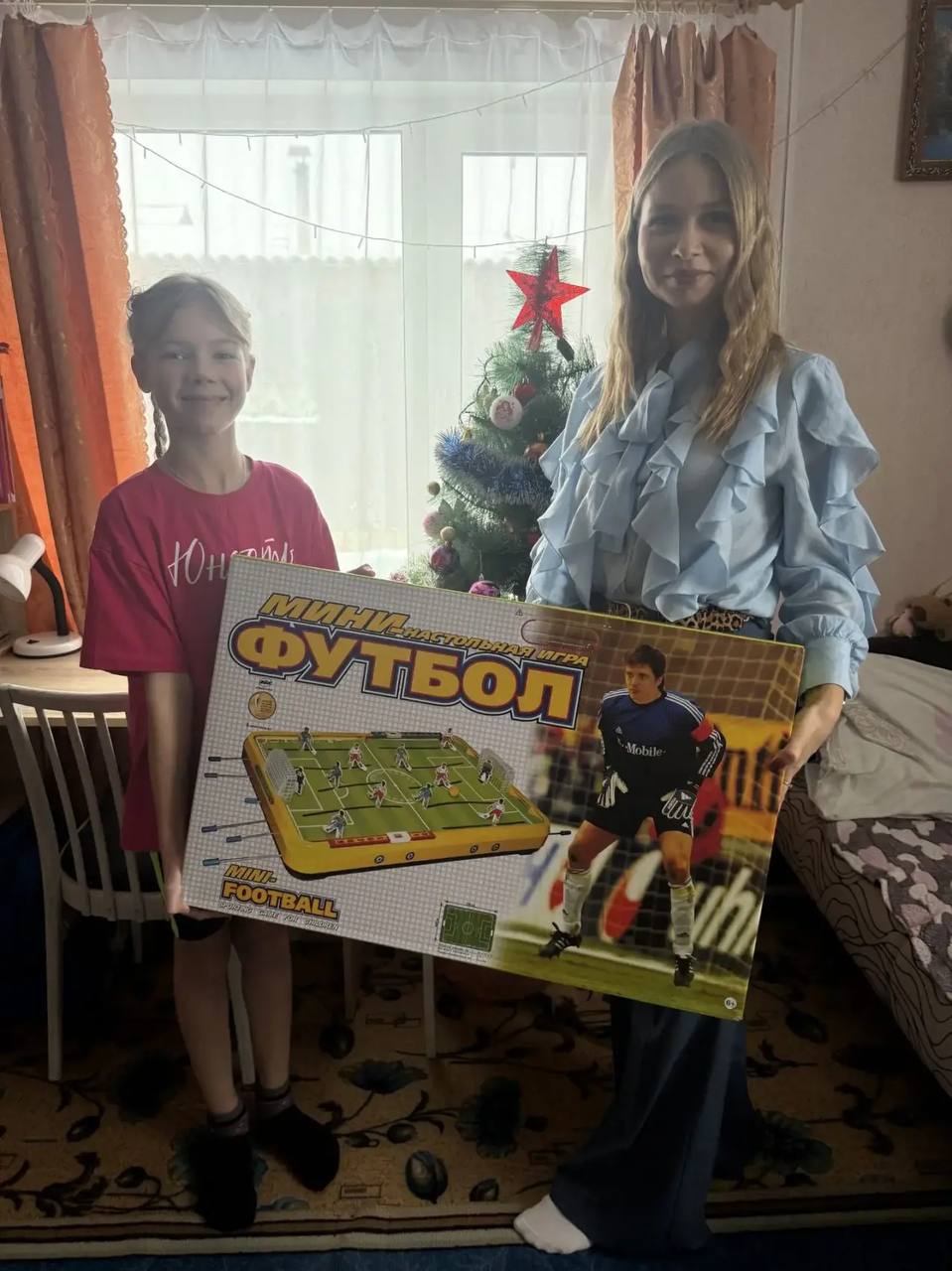 Набор для игры в настольный футбол получила Алена из с. Частоозерье от председателя Комитета по молодежной политике Олеси Яковлевой.