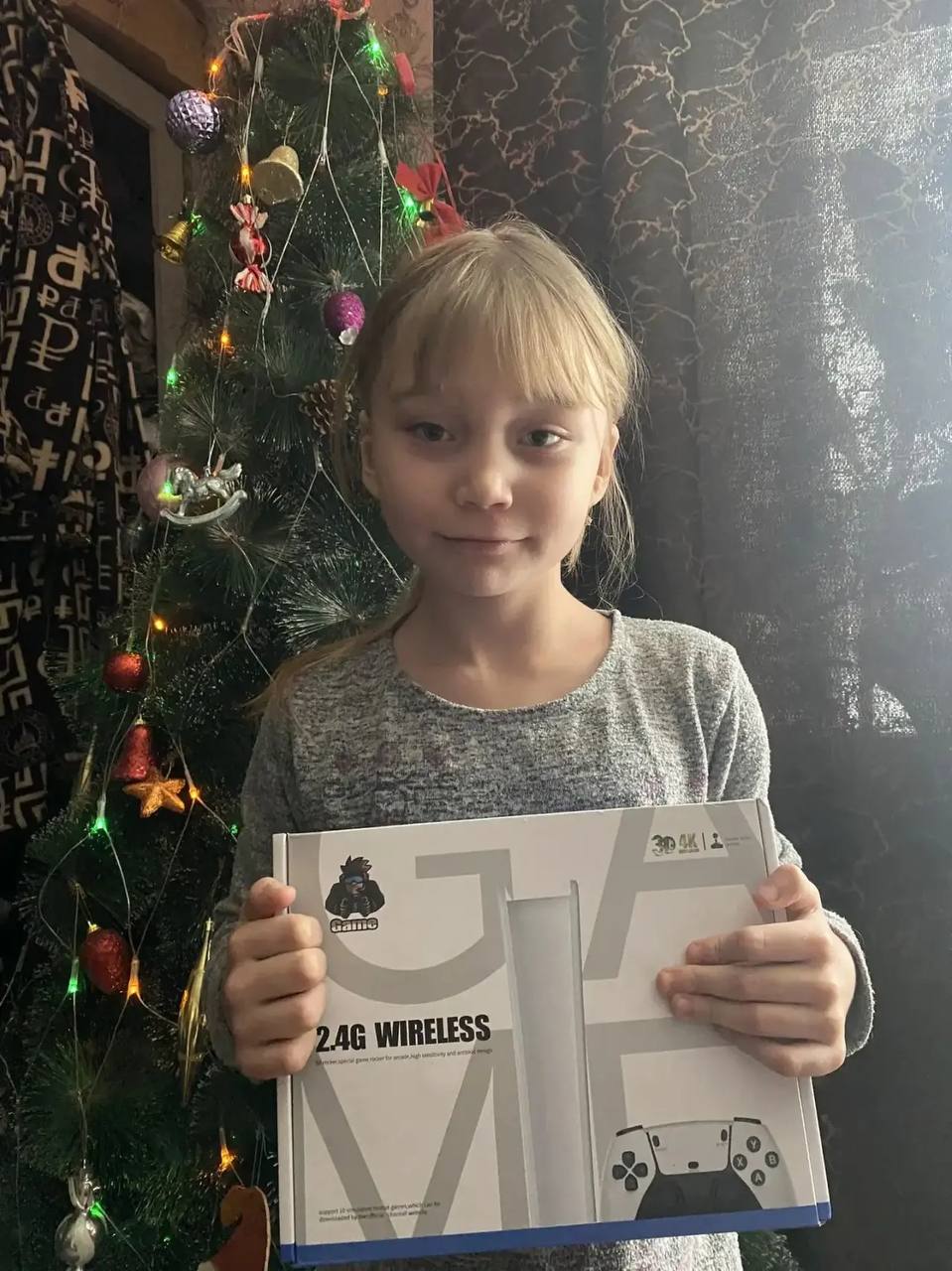 Игровую приставку для телевизора к Новому году получил Михаил из Катайского округа. Заветную мечту помогла осуществить директор департамента имущественных и земельных отношений Курганской области Яна Юрина. Младшие сестры Милана и Адель также получили подарки.
