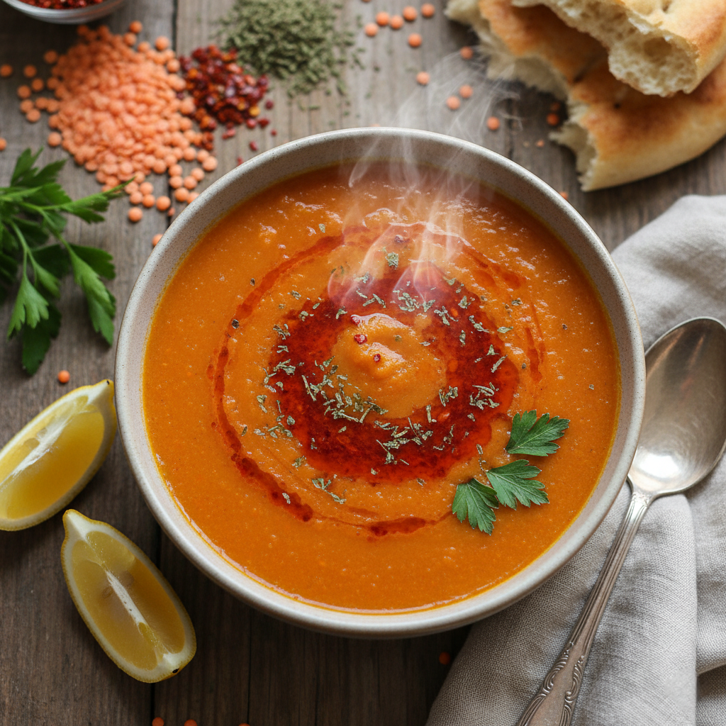 Мерджимек чорбасы, классический турецкий суп-пюре из красной чечевицы, стал настоящим символом гостеприимства турецкой кухни. Этот легкий и сытный суп не только порадует вкусом, но и подарит аромат с добавлением свежей мяты и лимона.