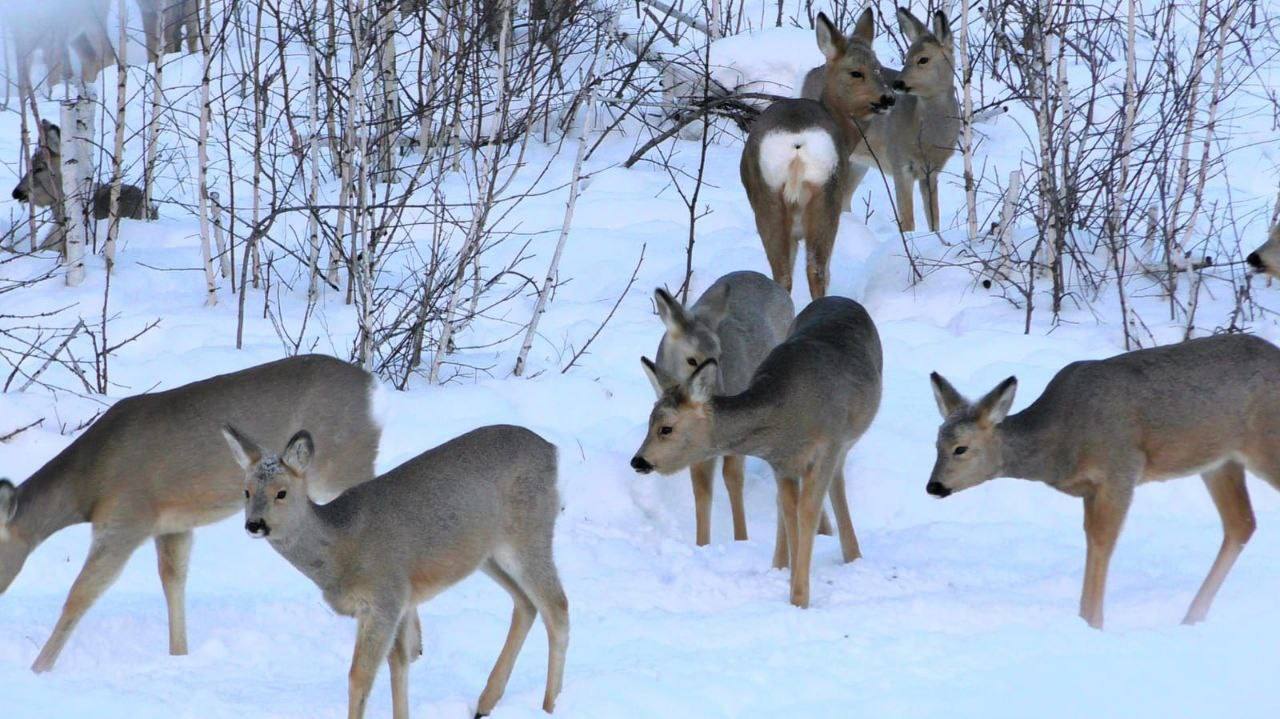 Сотрудники охотничьих хозяйств подкармливают животных в Курганской области