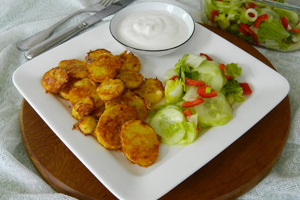 Прежде всего, картофель следует тщательно вымыть, используя щетку или грубую сторону губки. Затем его отваривают целиком и оставляют остывать. После охлаждения картофель нарезают на ломтики желаемого размера.