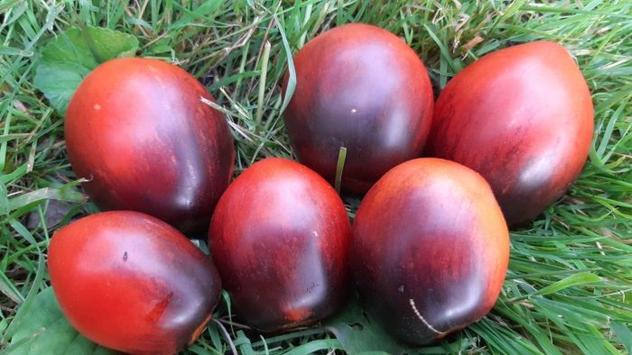 Плоды "Сержанта Паскаля" представляют собой настоящую визитную карточку сорта. Они варьируются в форме: от удлиненно-сердцевидных до округлых, на одном растении могут встречаться разные варианты. Такой разнообразный внешний вид — генетическая особенность, формируемая в зависимости от условий опыления и питания растения.