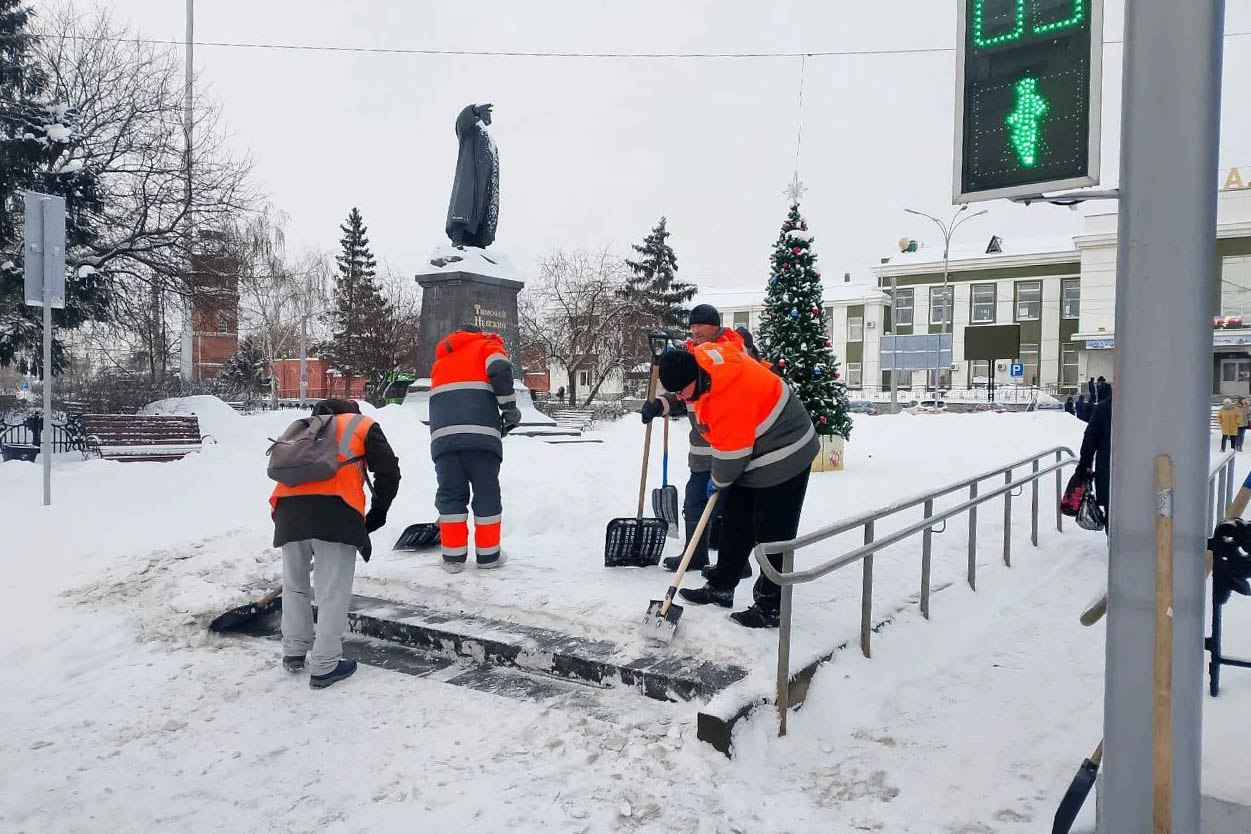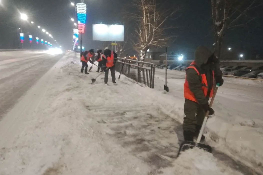 Каждый день на территории города не прекращаются работы по уборке и вывозу снега. Техника и бригады дворников трудятся днём и в ночные часы. Очистка ведется на дорогах, во дворах, рядом с учреждениями и организациями, на общественных пространствах.