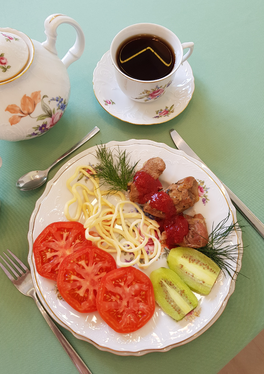 Когда время истечет, разложите готовую баранину по тарелкам, аккуратно отделив кости. В качестве дополнения подойдет клубничный соус, который добавит свежести и ярких ноток. Не забудьте украсить блюдо спелыми помидорами, киви и веточками укропа, а также щедро посыпать сырым сыром. Приятного аппетита!