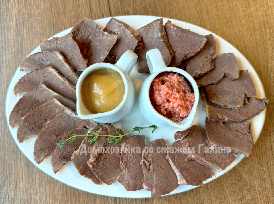 По истечении времени, сердце вынимается из бульона и полностью остывает, не вынимая из жидкости. Это поможет сохранить соки внутри. Для усиления аромата натирается измельченным чесноком и перцем, а затем оборачивается пергаментом и помещается в холодильник минимум на 3 часа. После этого нарезается на ломтики и подается с хреном и горчицей.
